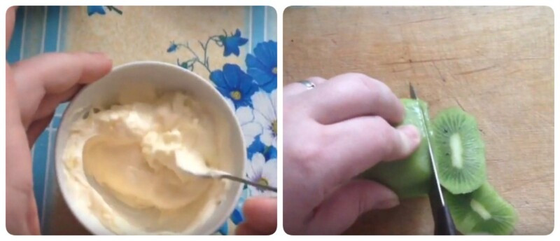 Давайте попробуем необычное сочетание продуктов в одном блюде. Теперь нам понадобится такой фрукт как киви. Он будет прекрасно освежать и дополнять вкус.
