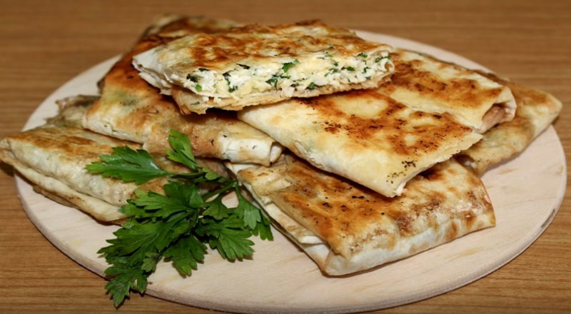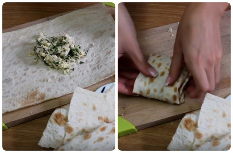 Перед подачей блюда можно разрезать пополам и украсить зеленью. Также во время приготовления лаваш можно смазать майонезом для большей сочности.