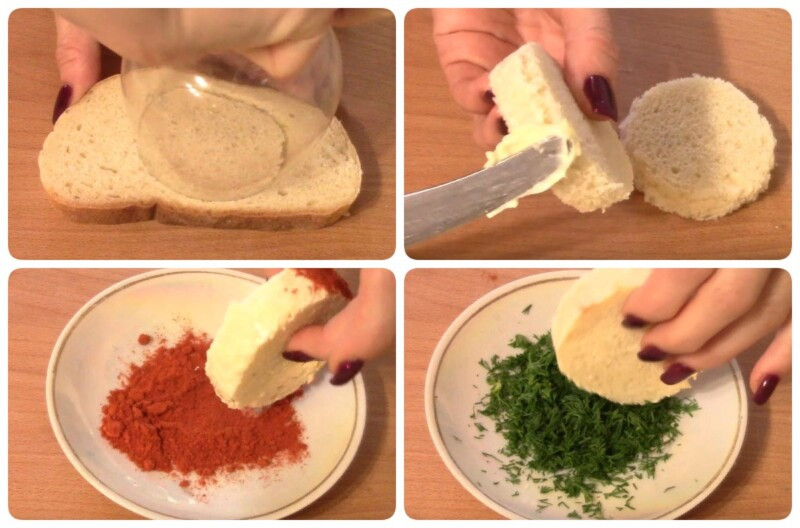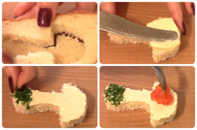 Не забывайте, что бутерброды и канапе могут быть самой разной формы. Для вырезания подойдет все, что у Вас есть под рукой: рюмки, стаканы, формочки для выпечки и т.д.