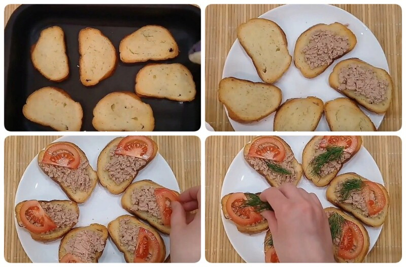 Вариаций закусок на хлебе очень много: с маслом, майонезом, сыром, рыбой, колбасой и т. д. Перечислять можно долго, выбор огромный. Так же можно поиграть с оформлением, проявите фантазию.
