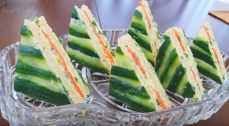 Эти бутерброды имеют очень оригинальное оформление и однозначно привлекут внимание гостей. В рецепте нет ничего необычного, все стандартно. Вся фишка в том, что сэндвичи выглядят очень свежо и красиво.