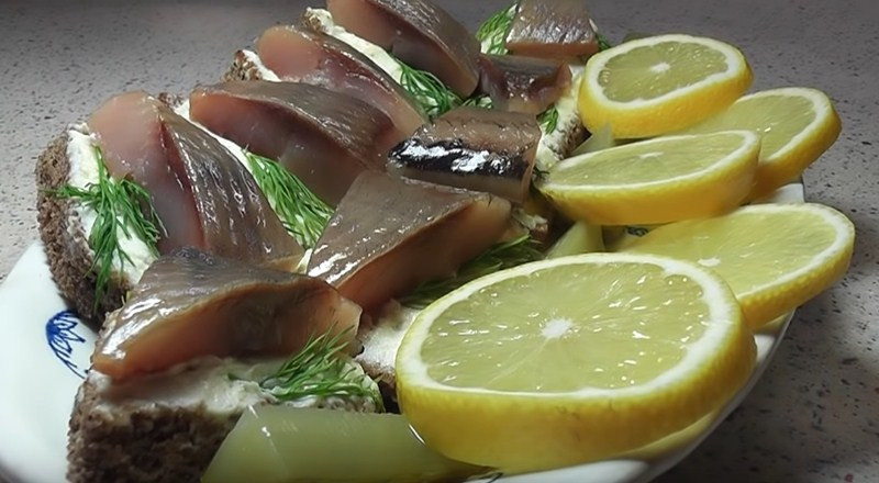 Начнем, пожалуй, с самого распространенного и классического варианта закуски. Все просто, быстро и вкусно. Сложно удержаться и не съесть хоть кусочек:)