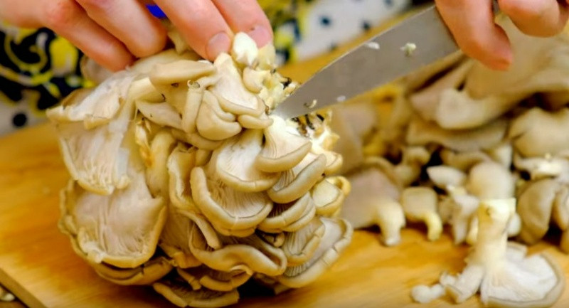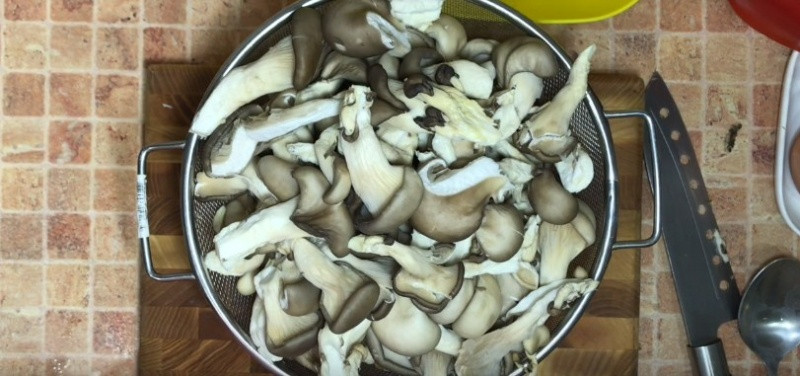 1. Грибы нужно хорошо промыть под проточной водой от мусора и загрязнений. Затем, если попадаются слишком крупные вешенки, разрезать их. Но лучше всего изначально выбирать грибы с маленькими шляпками.