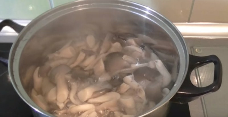 2. Теперь грибы нужно отварить в обычной воде, не добавляя специи, соль и сахар. Варить нужно в течение 15 минут после того как они закипели.