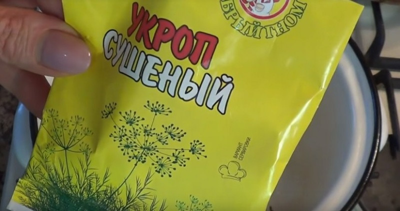 4. Затем добавляем сушеный укроп примерно 1 ст. л. Он добавит пикантности во вкусе и придаст полезные свойства грибочкам. Это связано с тем, что даже высушенная зелень сохраняет все полезные для организма минералы, микро- и макро-элементы.