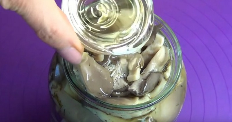8. Сверху выливаем растительное масло. Затем закройте их крышкой и уберите в холодильник на 12 часов. Этого времени будет достаточно для того, чтобы вешенки обрели свой неповторимый вкус.
