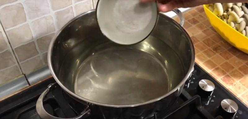 2. Займемся отвариванием вешенок. Для этого в кастрюлю нужно налить 3 л воды, высыпать туда 3 ст.л. соли и дождаться закипания.