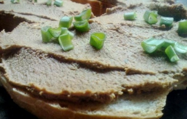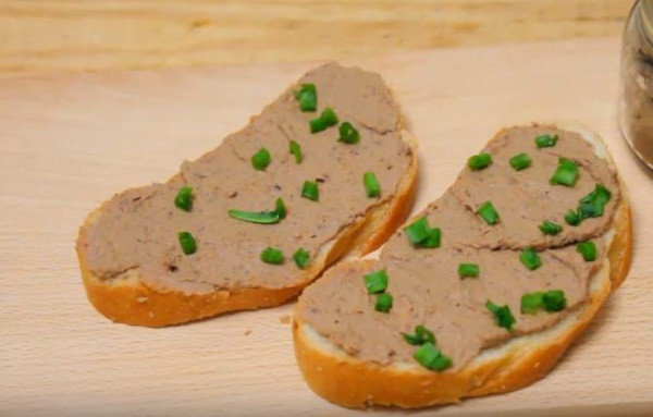 Дайте немного остыть паштету и намазывайте его на хлеб. Получилась невероятно вкусная и нежная закуска. В качестве перекуса будет в самый раз. Можно сверху бутерброд посыпать зеленью.