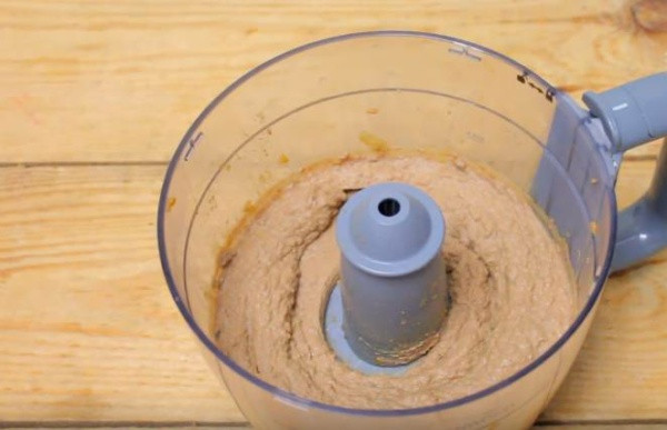 9. В готовой массе не должны попадаться комочки, если же они есть, то надо ещё раз тщательно перемолоть. Обязательно в процессе попробуйте блюдо на соль и перец. Должна получиться нежная масса, которая по консистенции будет, как густая сметана.
