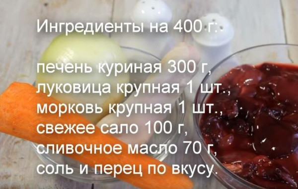 Рецепт приготовления закуски из печени с морковью, луком и салом