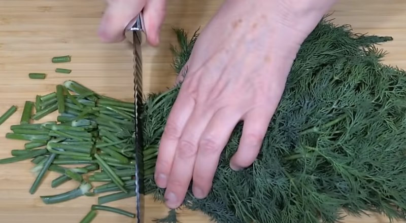 3. Укроп тщательно промываем от загрязнений и очень мелко рубим. Если у него слишком крупные, толстые стебли, то их лучше отрезать.
