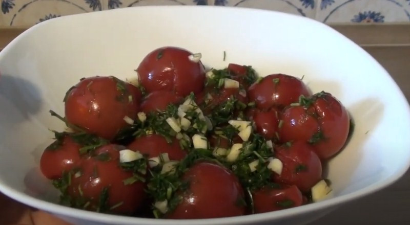 Малосольные помидоры быстрого приготовления с чесноком и зеленью