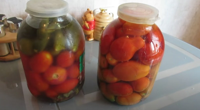 5. В заключении вливаем рассол в банку и закрываем все обыкновенной пластиковой крышкой. Убираем томаты засаливаться в прохладное, темное место: в подвал или холодильник. Процесс займет 2-3 недели.