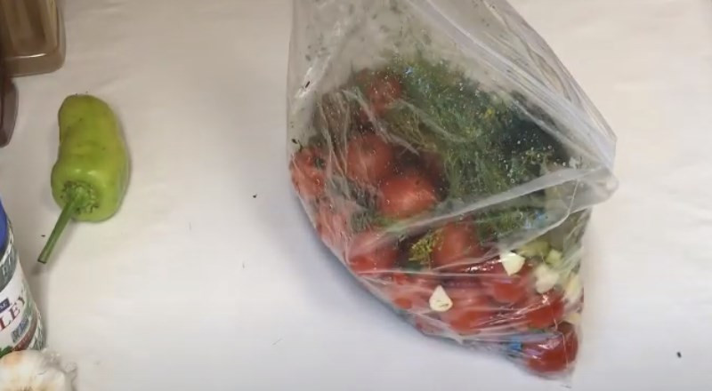 4. После всех проделанных действий оставляем пакет закрытым при комнатно температуре на 3 часа. После чего рекомендуется убрать помидоры в холодильник, чтобы они охладились.