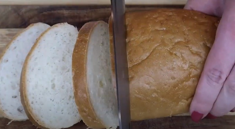 1. Для начала необходимо сделать хлебную нарезку. Чтобы ускорить выполнение этого этапа, можно сразу приобрести нарезанный хлеб. Он легко найдется в ближайшем супермаркете. Но если такого в наличии нет, то нужно сделать нарезку самостоятельно. Так, уже нарубленные хлебные кусочки нарезать на 2 половинки.