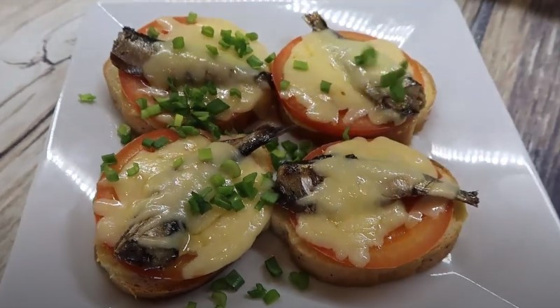 Рецепт горячих бутербродов из шпрот с сыром в духовке