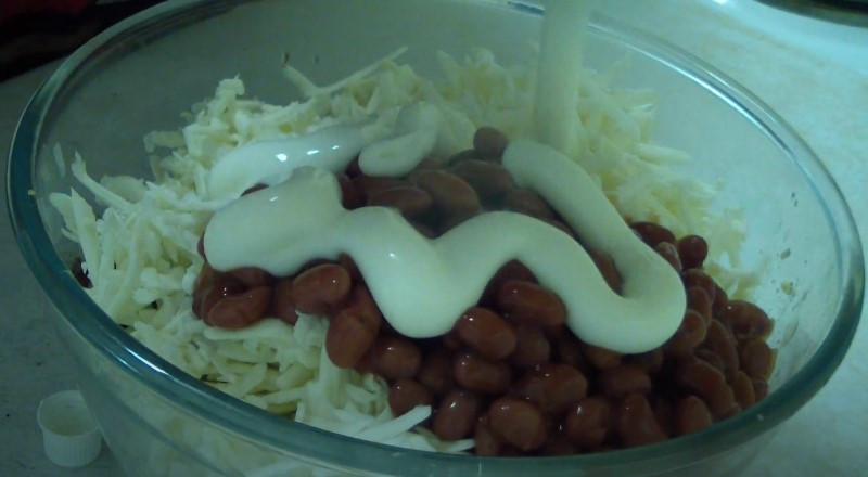 5. Далее к смеси добавить майонез и хорошо все перемешать. Это будет своеобразный соус-намазка.