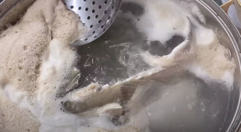 1. Судака и карпа предварительно чистим и промываем. Забрасываем в кастрюлю, наполненную водой, и доводим до кипения. В процессе приготовления будет образовываться пенка, ее нужно аккуратно собирать шумовкой.