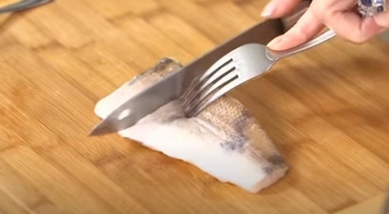 4. Теперь необходимо почистить рыбу. Для этого кладем остывшие тушки на разделочную доску и удаляем хребет. Тщательно следим, чтобы на поверхности не осталось других ощутимых косточек. Нарезаем рыбу на порционные кусочки.